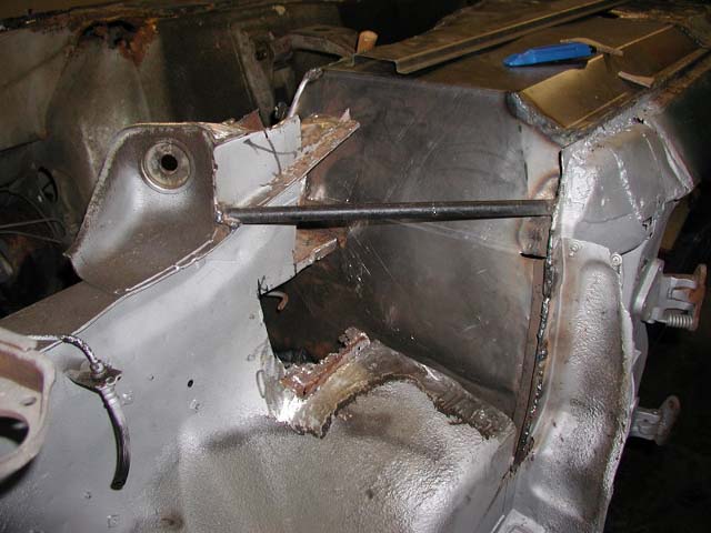 Below: Here is another picture too of the passenger firewall from below, this is where the battery acid eats the floor out.