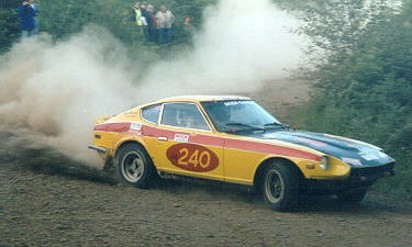 Rick Hintz and Mark Swalley (Mark Johnson substituting) are campaigning this fairly stock classic Datsun 240Z in SCCA ClubRally, North Pacific Division, Group 5 (Open Class 2-wheel Drive). We are currently holding 2nd place in the division.