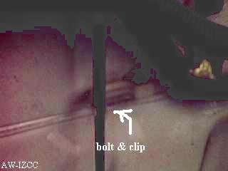 BE CAREFUL HERE... as soon as you loosen the nut and remove it... the bolt will have a tendancy to drop straight down into the deep recesses of your car!! :(. This is especially true for the front bolt (the one closer to the bumper, further from the windshield). The rear bolt is clipped onto a fastener against the wall separating the engine from the interior. The front one is NOT secured.