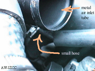 air inlet tube, there is a small hose. On this small hose is a small metal