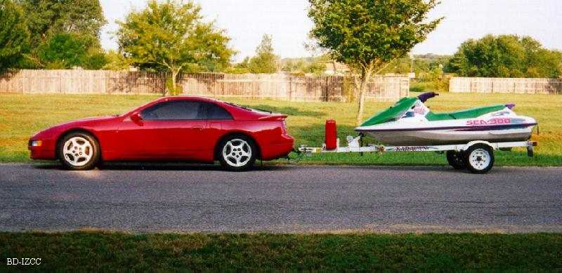 The purpose of this page is to give the reader an ideas about installing a trailer hitch on a 1990-1996 Nissan 300ZX. I welded my hitch so I could remove the receiver when not in use and you could not tell that the car has a trailer hitch. I use mine to tow a 3 seater 94 SeaDoo personal watercraft or a bike rack that will hold 3 to 4 mountain bikes.