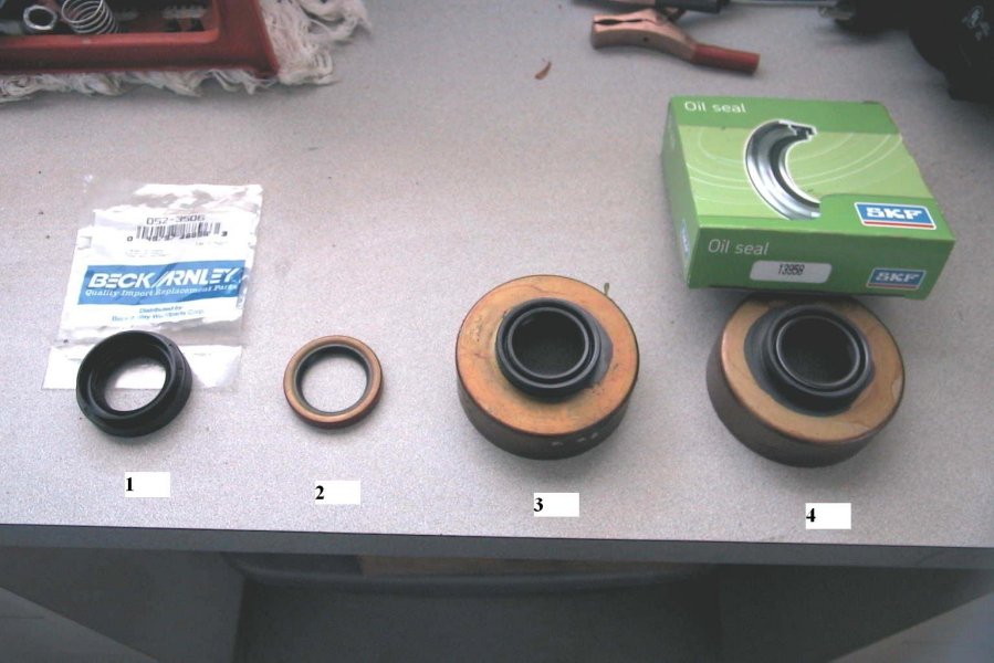 4) Is the seal I ordered from NAPA. It took two weeks to get (!). SKF Part Number 13958. Purchase Price is $27.50. This seal is made in Japan.