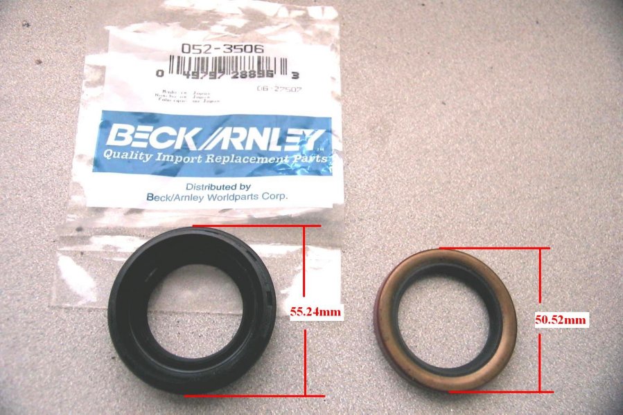 1) Is the Beck Arnley Seal I ordered from Advance Auto Parts. Beck Arnley part number 052-3506, purchase price $14.43. It took a week to get. The seal is made in Japan.