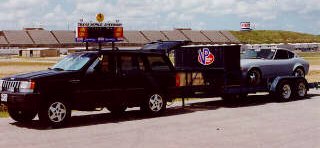 | Hours before becoming grey | Dave Olson and I just about wore out his new Jeep hauling the 'Stealth' around the country. (Texas World Speedway shown) |