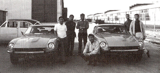 Pictured below: Mr. Katayama, President Nissan Motors USA, with the Road Test Crew and one of the Production Prototypes sent for initial road testing.